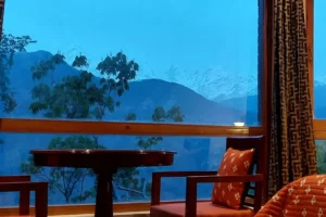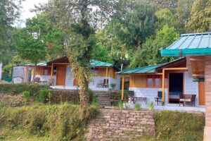Chestnut Grove Himalayan Lodge is one of the best hotel in Chaukori Road. CGHL is located on a hill slope overlooking the Himalayas at a small Himalayan hamlet of Vijaypur.  Tea gardens carpet the slopes of Vijaypur while the surrounding ridge is completely covered by rows of Pine, along with Chestnut, Pine, Oak, Kafal and Rhododendron.